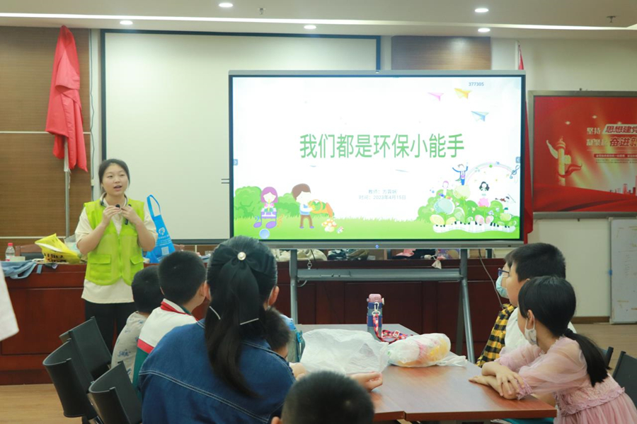 为增强小朋友们环保与责任意识,提高小朋友动手实践能力,外国语学院阳光展翅实践队于4月15日上午9:00在龙湖街道开展第三期“向阳学堂”志愿服务活动。